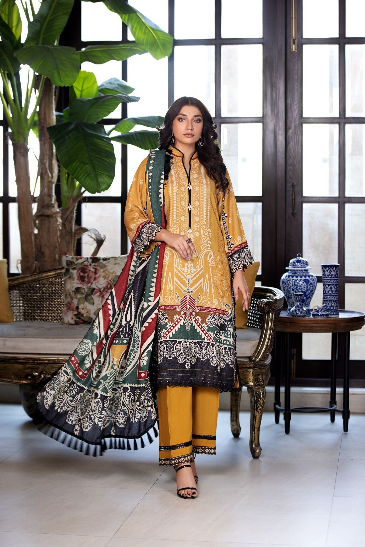 Karandi's versatility extends beyond its tactile charm, effortlessly adapting to a myriad of styles. Whether it's the timeless elegance of a traditional shalwar kameez, the chic modernity of a contemporary kurta, or the structured sophistication of a stylish jacket, karandi proves its adaptability, making it a versatile choice for women seeking fashionable options for various occasions.