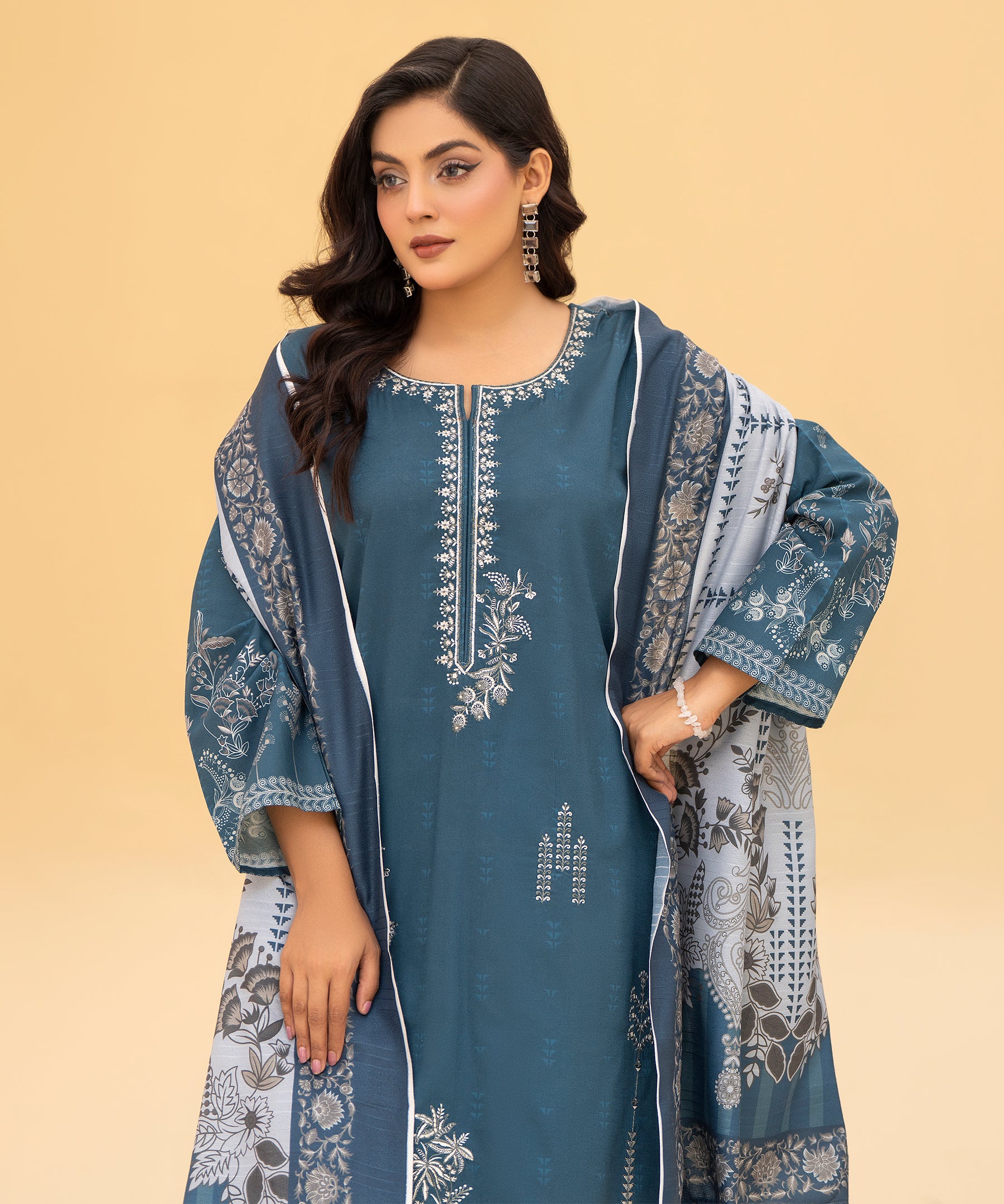 3PC Printed Embroidered Khaddar - 89