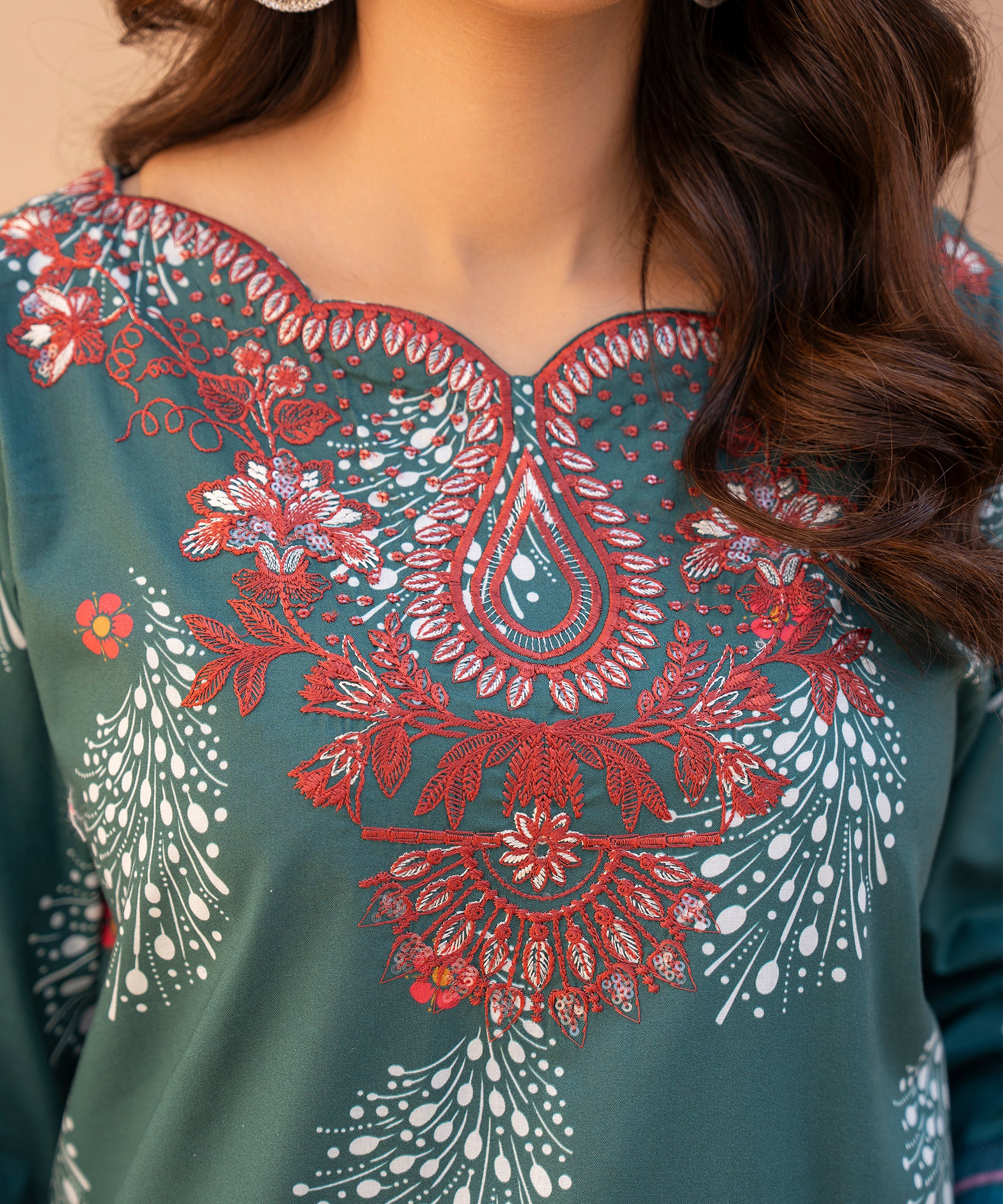 3PC Printed Embroidered Suit - LDS 1329