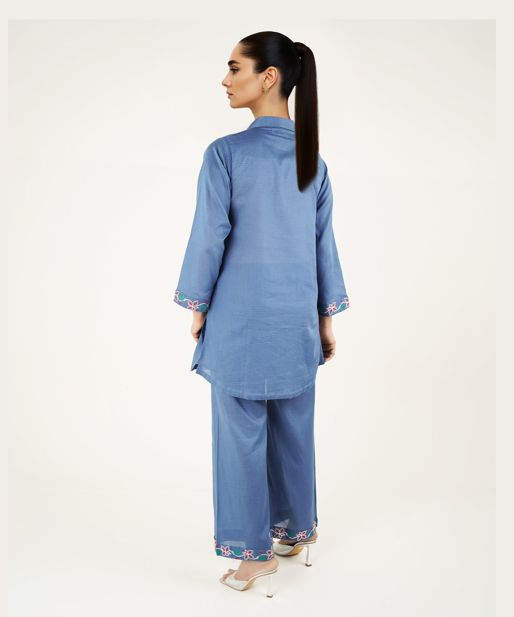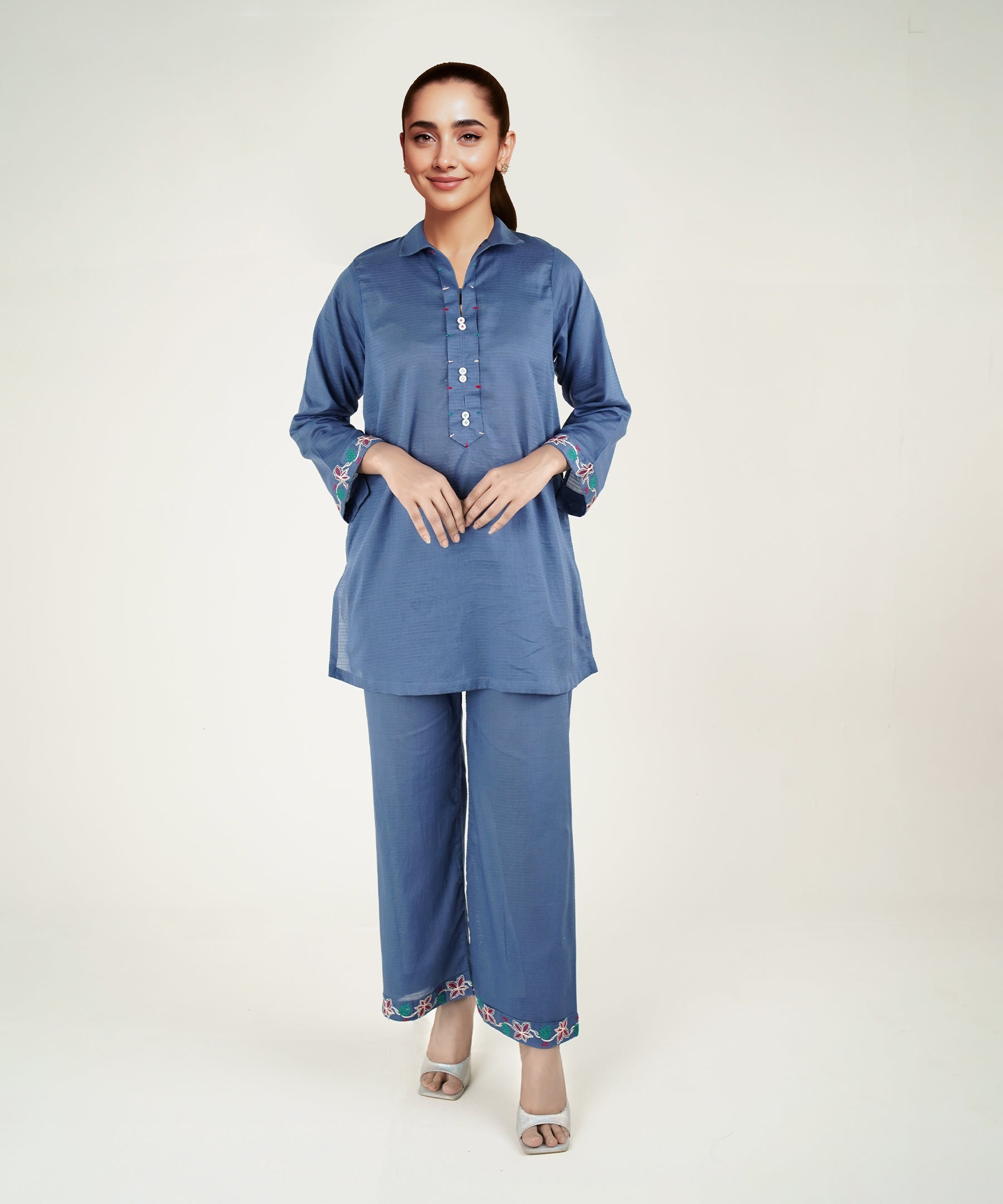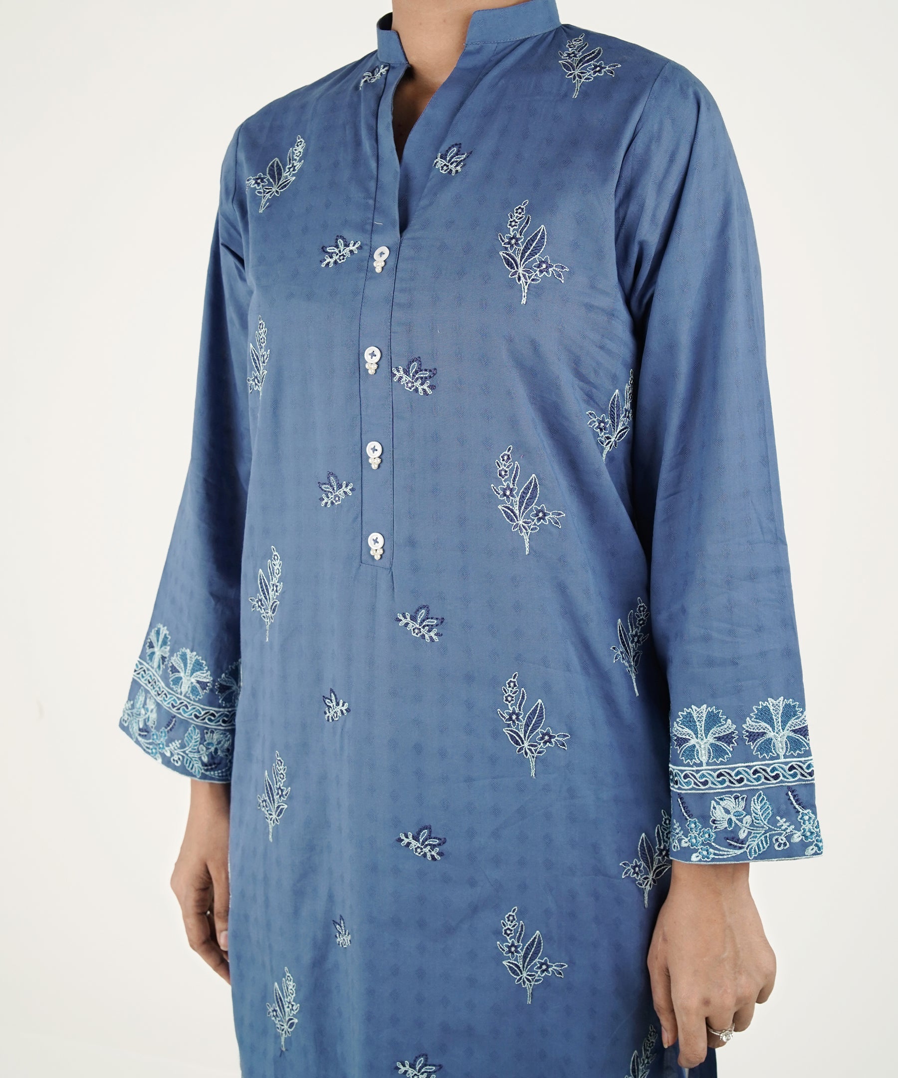 2PC Solid Embroidered Suit - LDS 1137