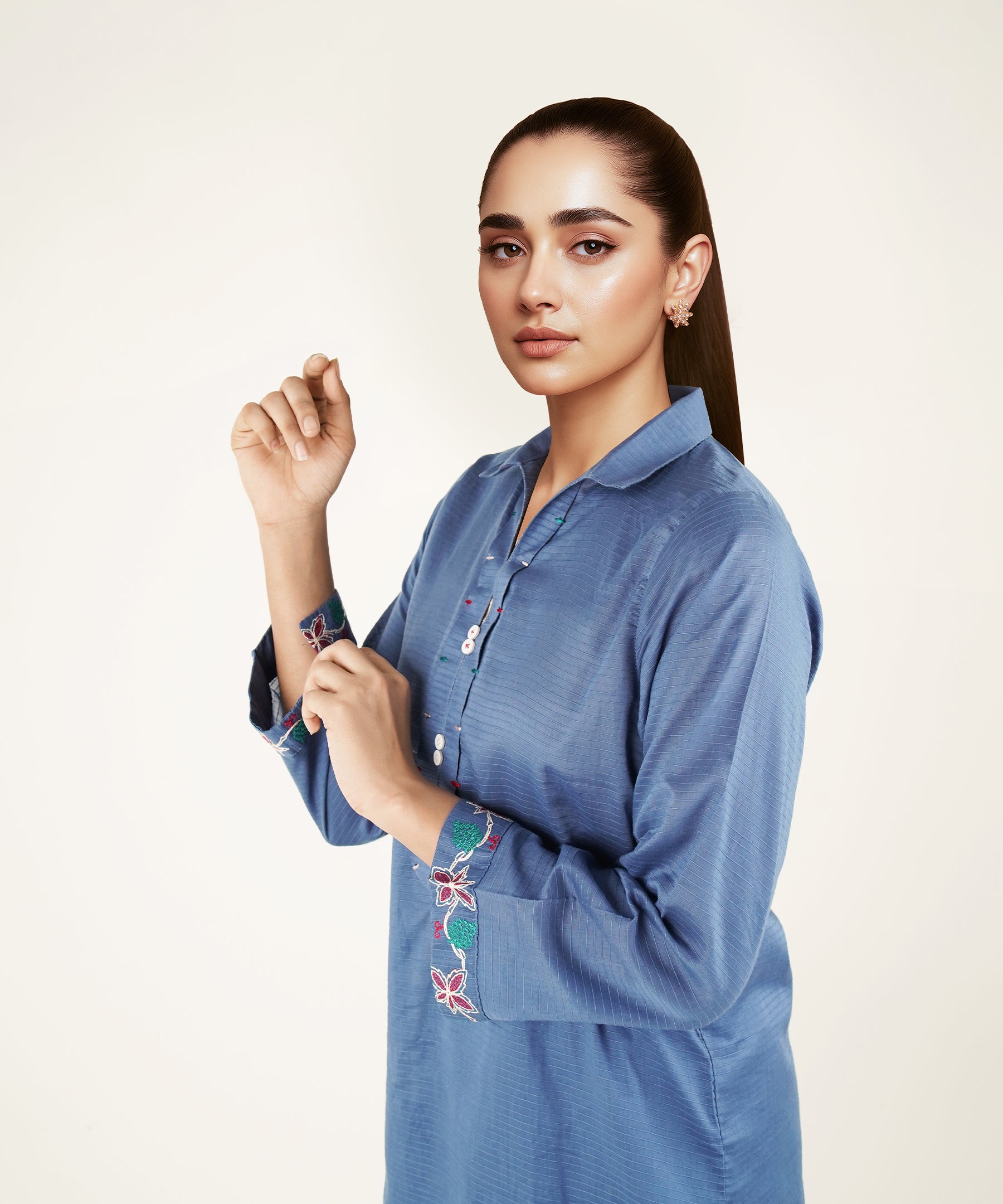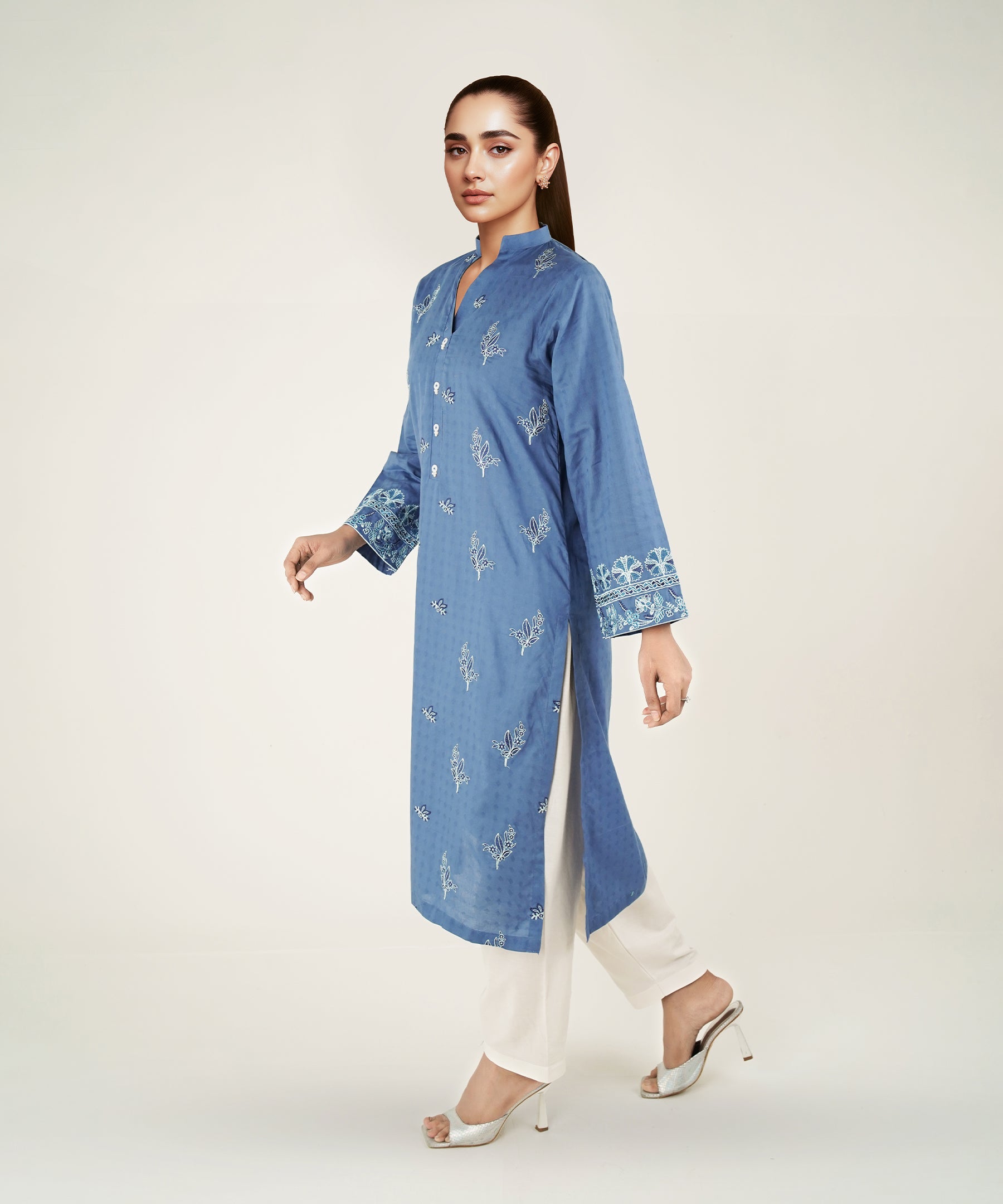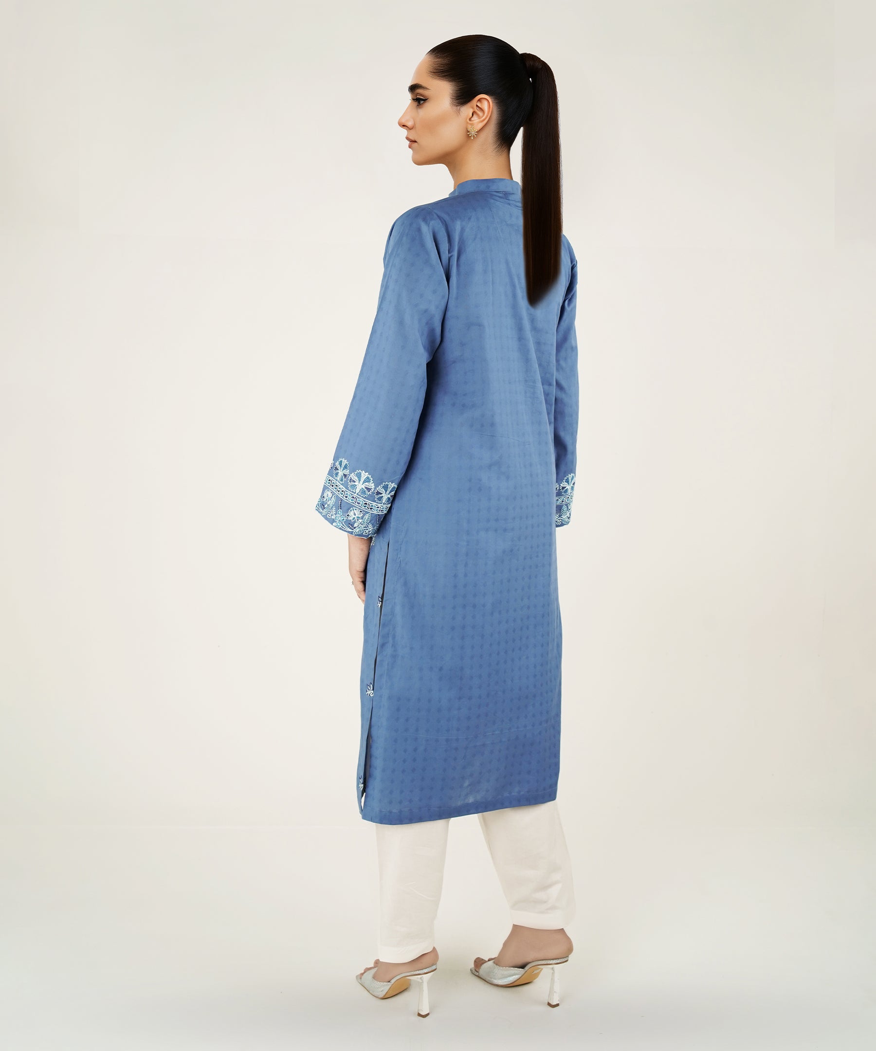 2PC Solid Embroidered Suit - LDS 1137