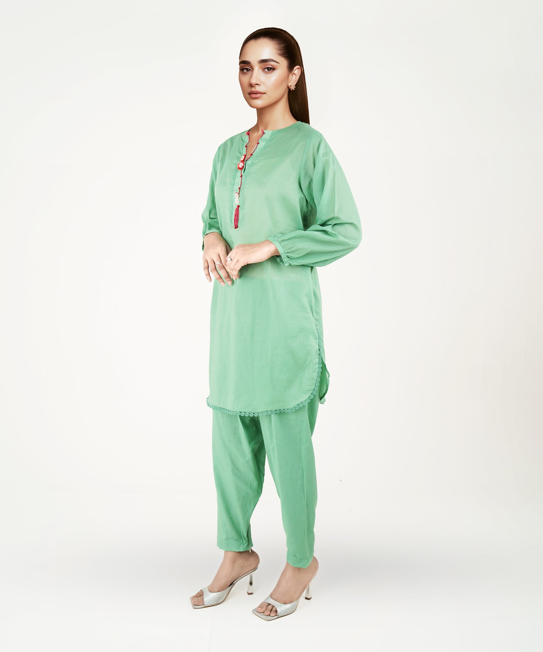 2PC Solid Embroidered Suit - LDS 1231
