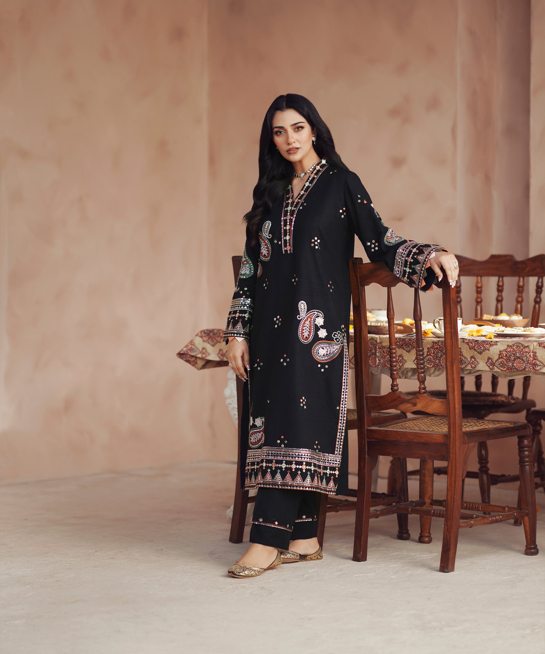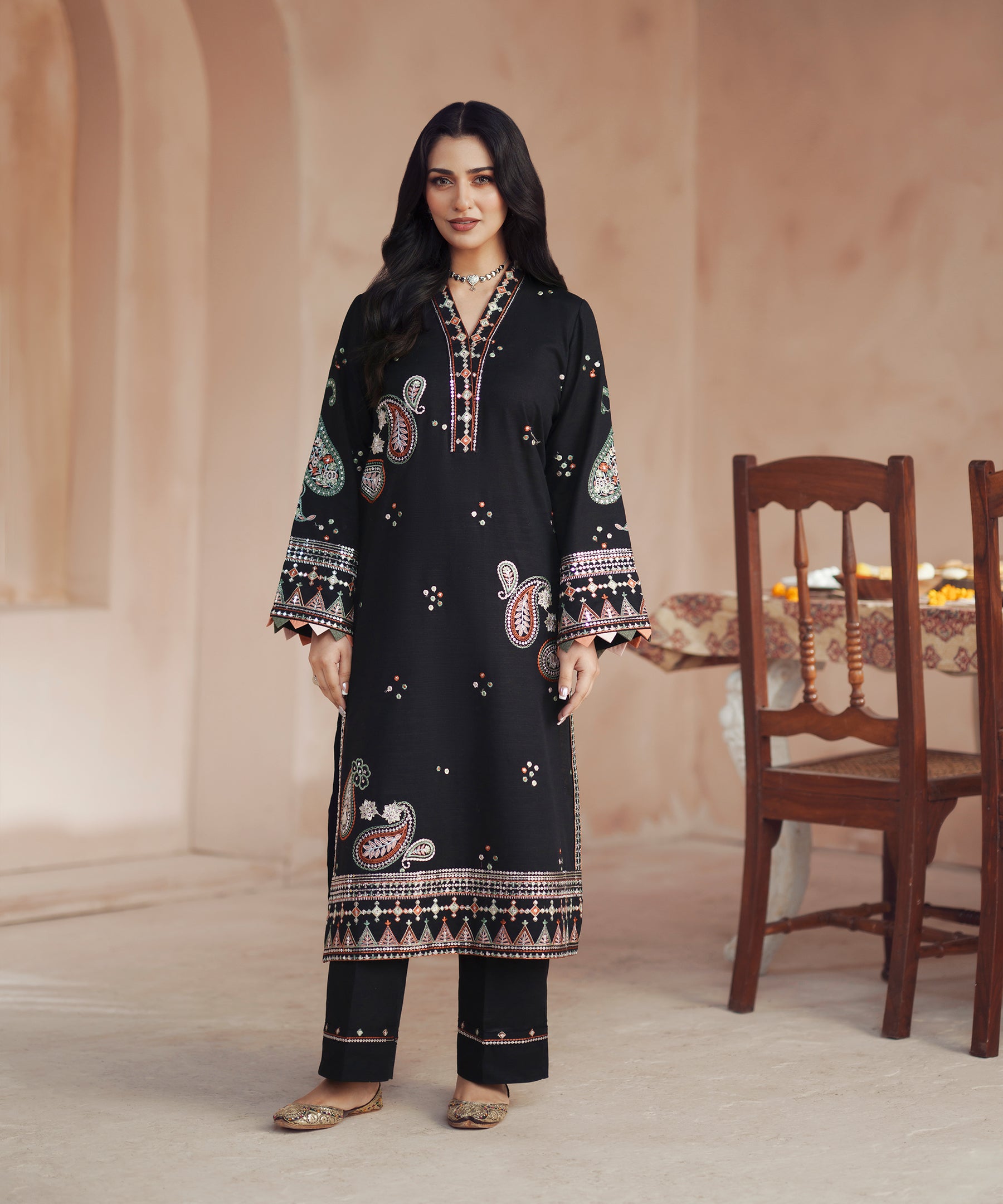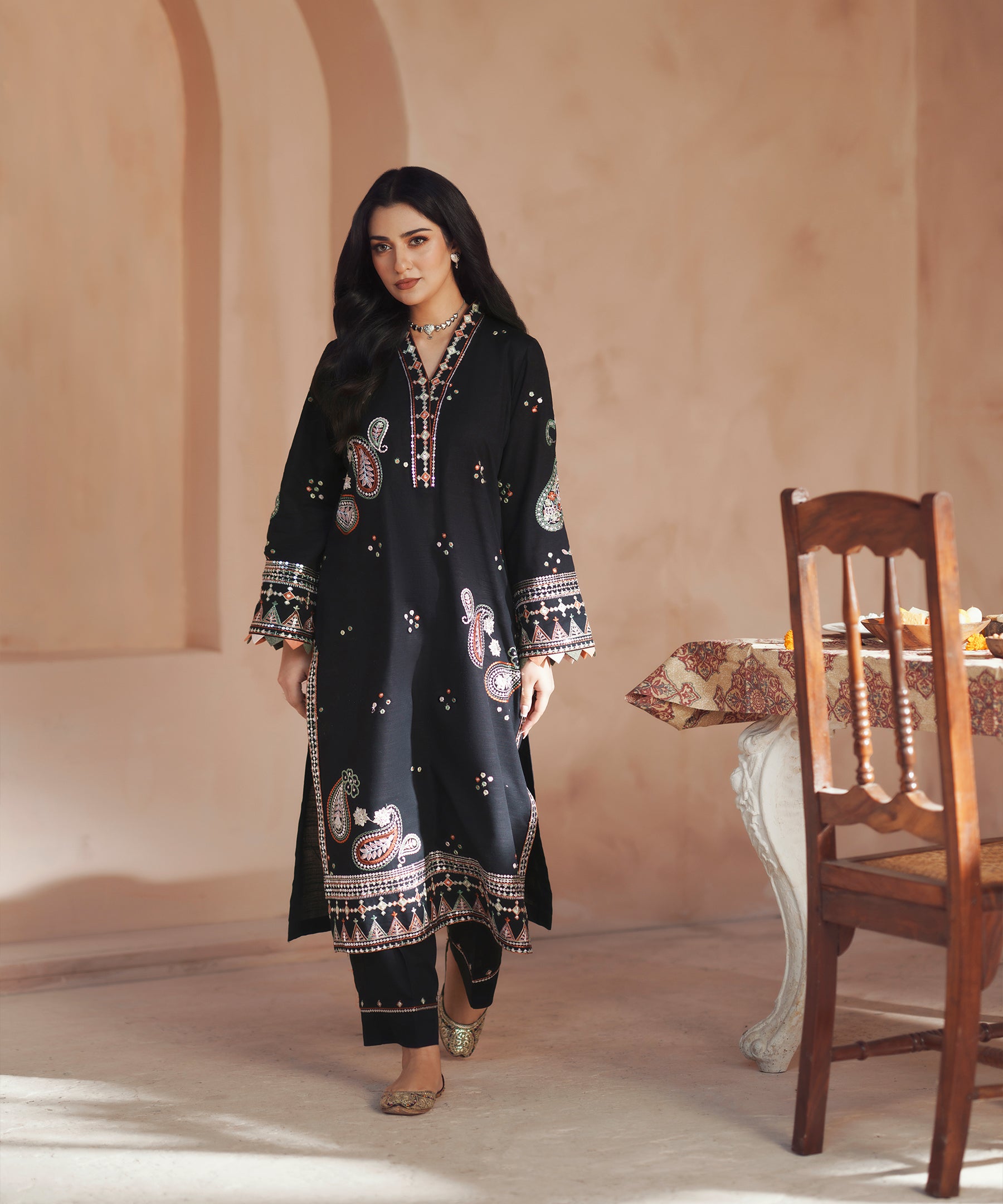 2PC solid embroidered Suit - LDS 1386