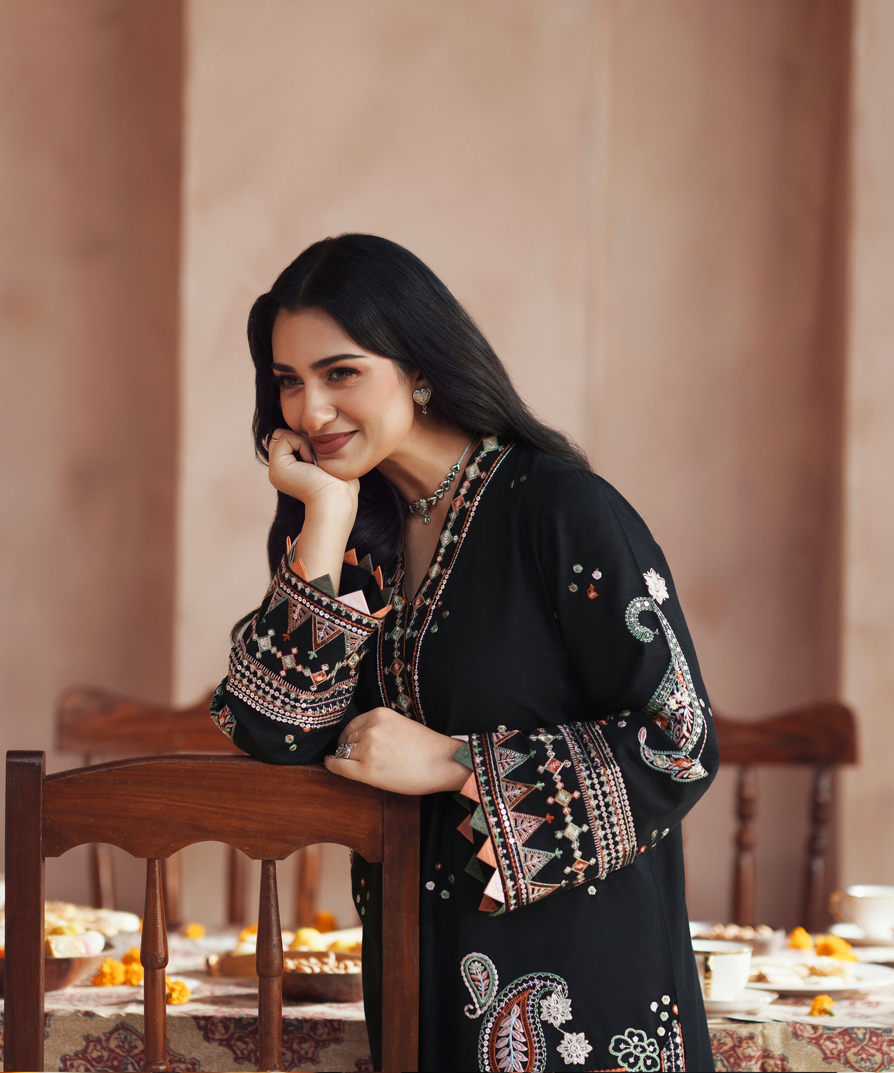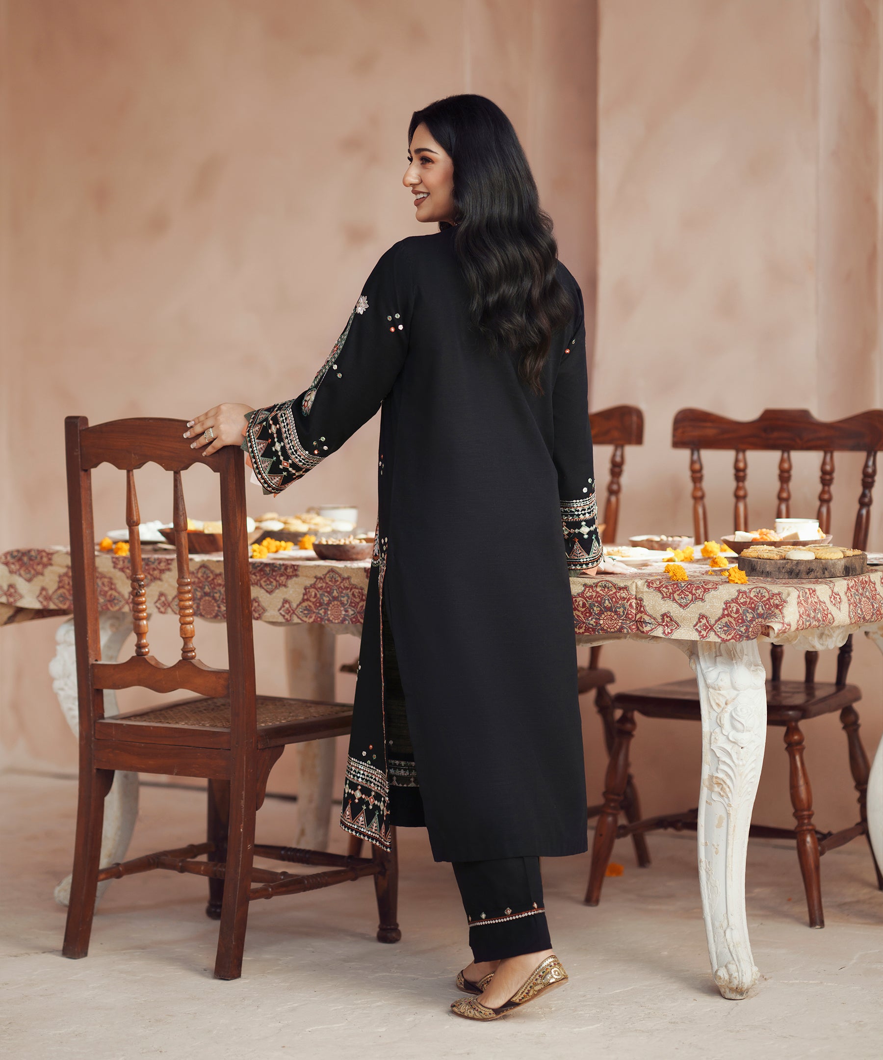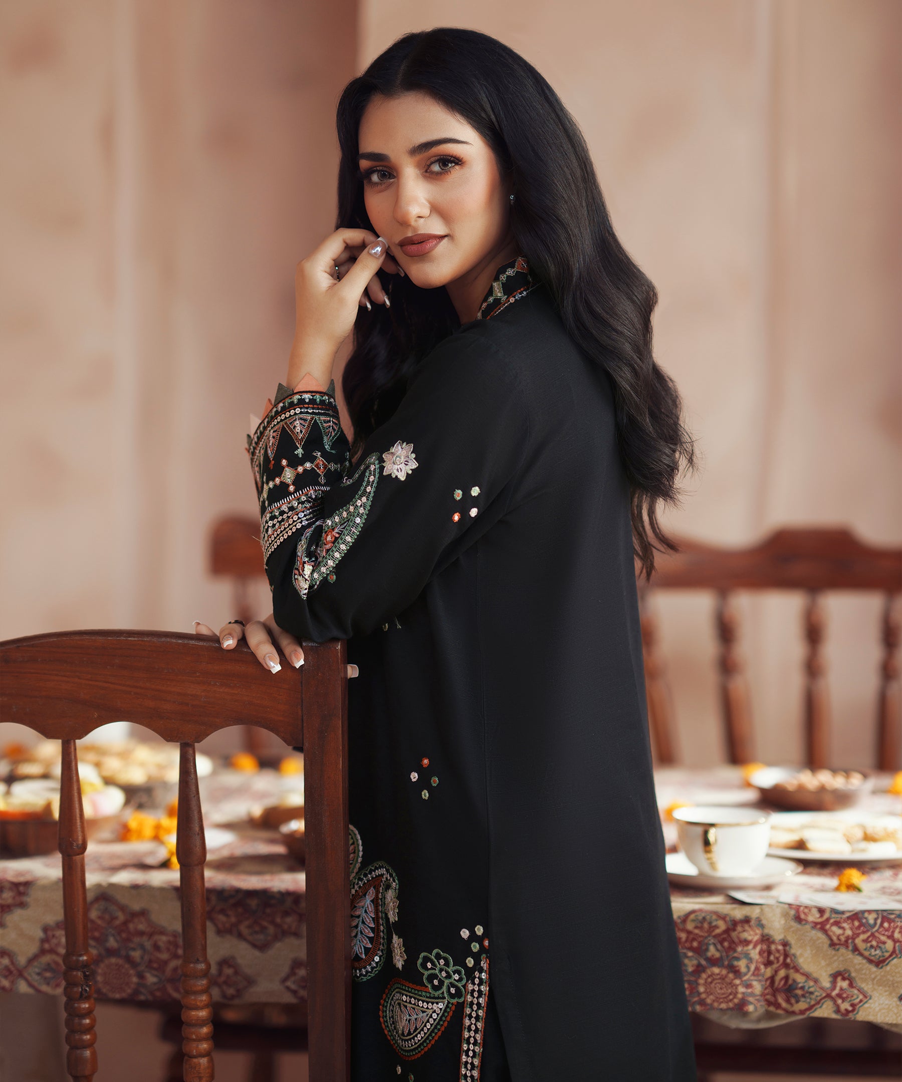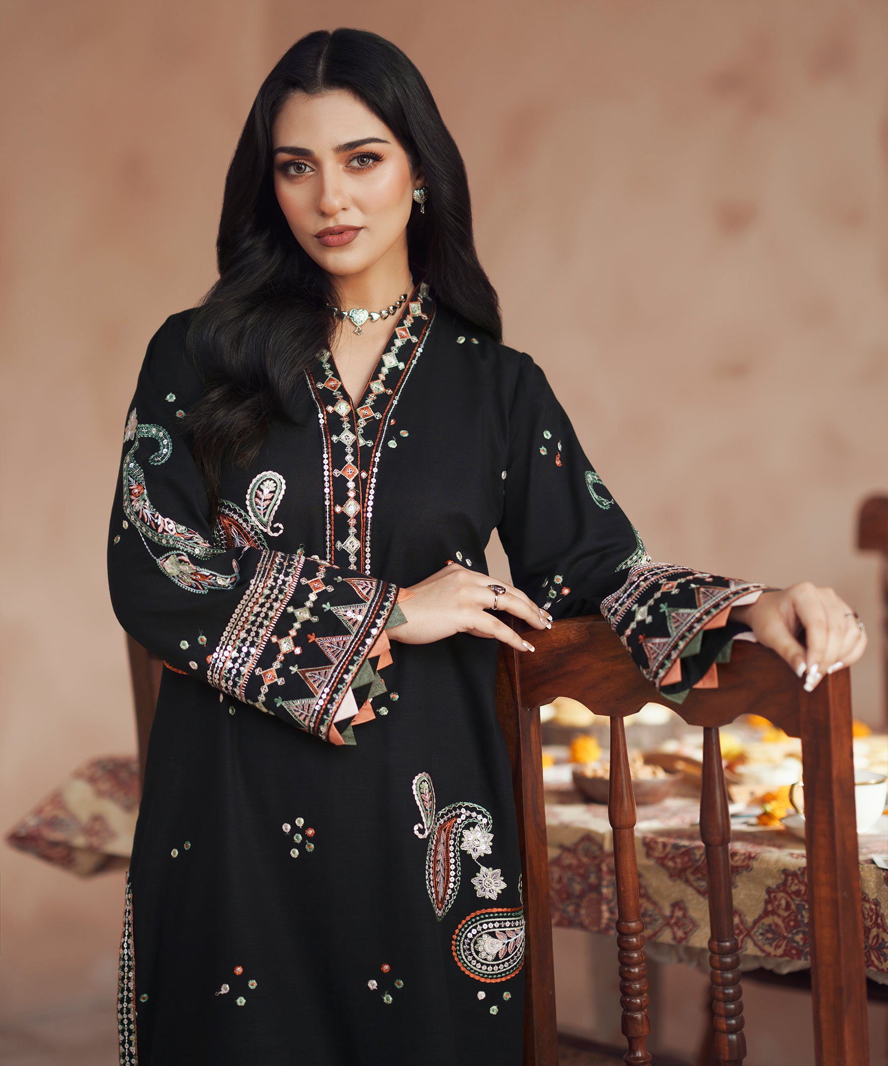 2PC solid embroidered Suit - LDS 1386