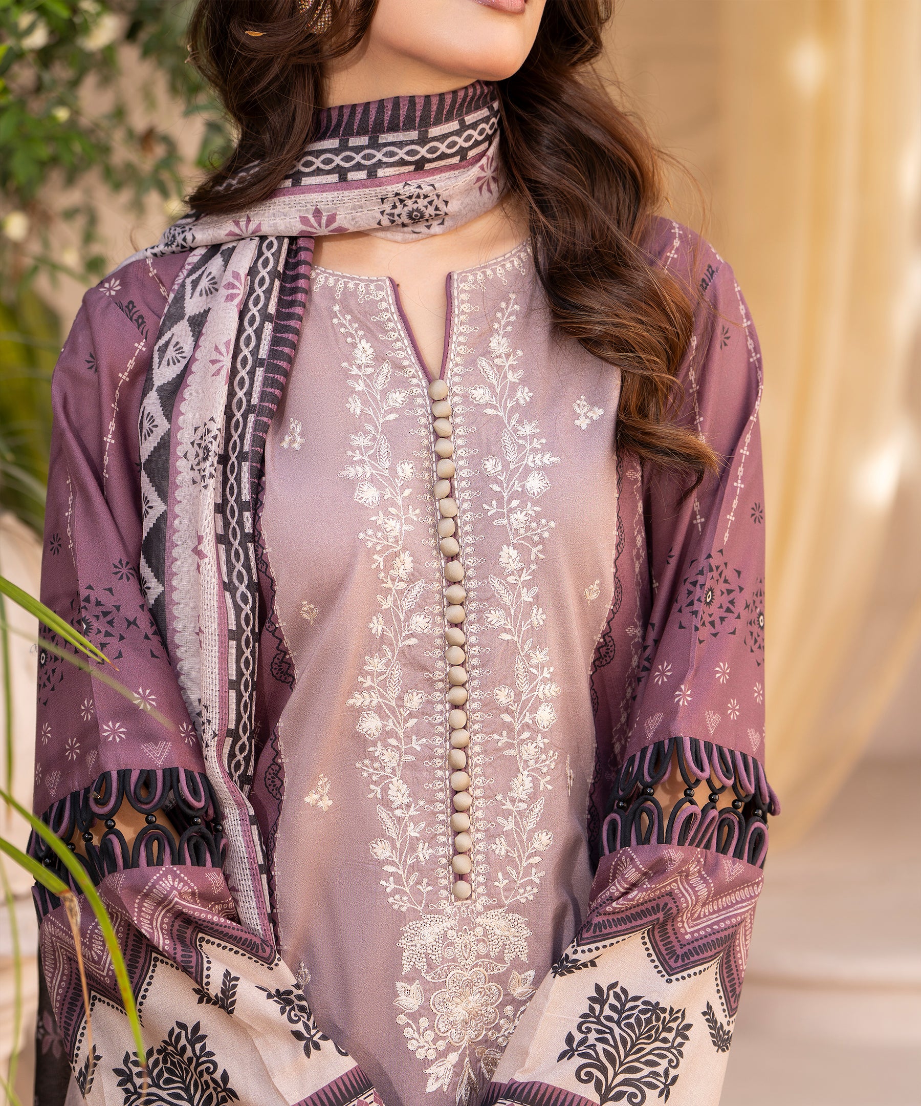 3PC Unstitched Printed & Embroidered