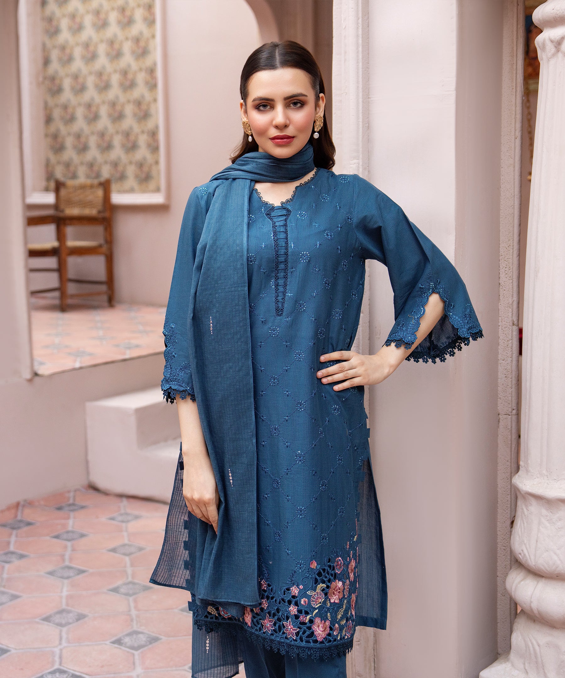 3PC Universal Embroidered Lawn - 237