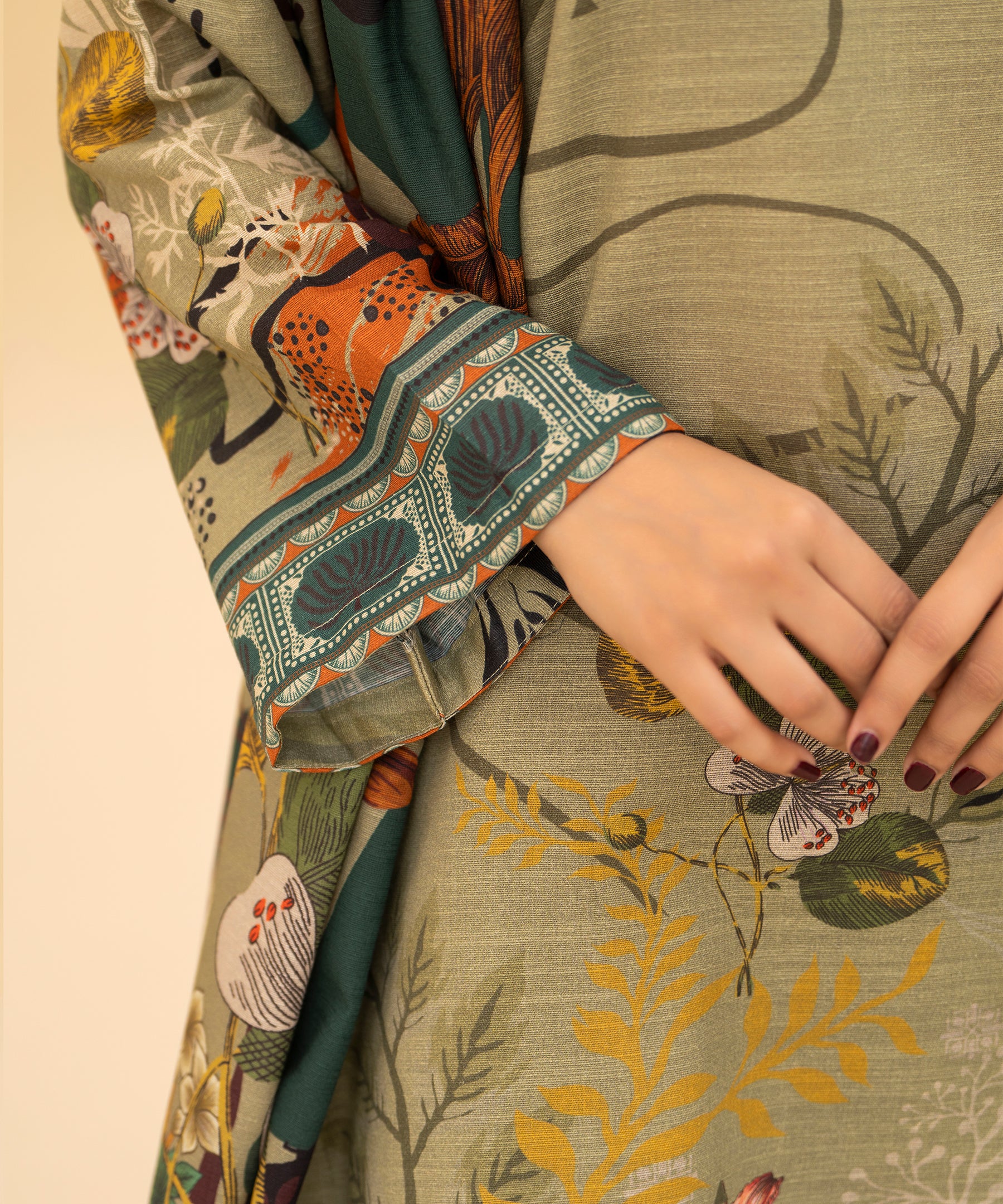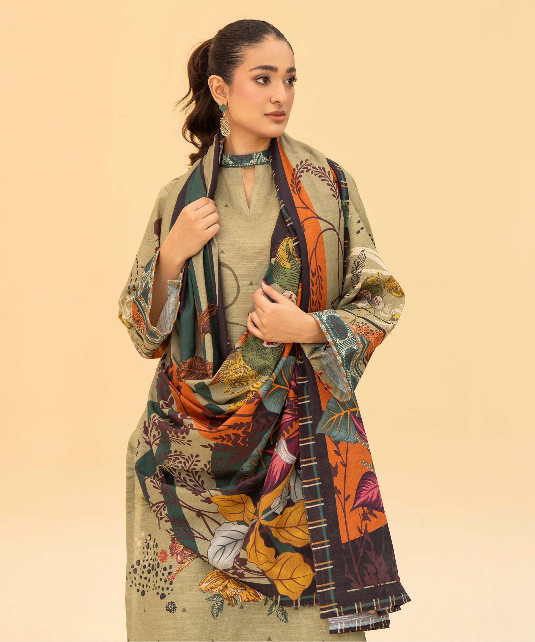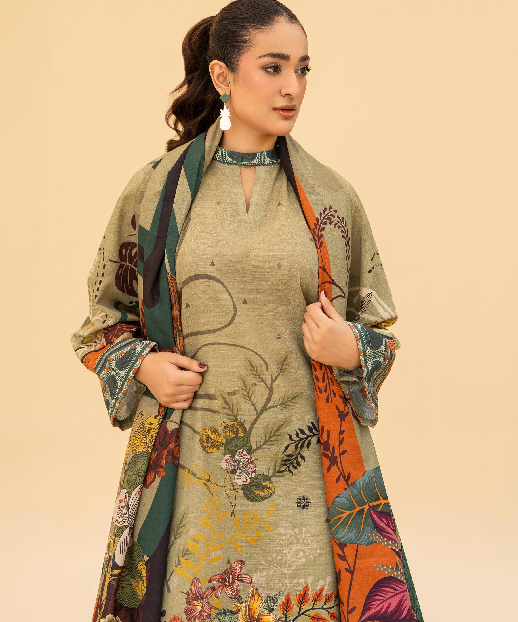 3PC Printed Slub Khaddar - 2616