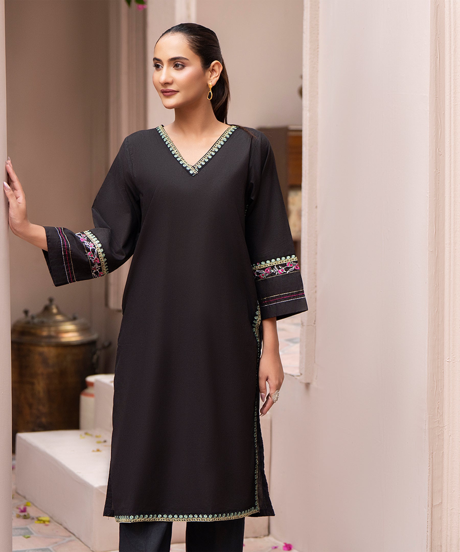 1PC Solid Embroidered Suit - LDS 1087