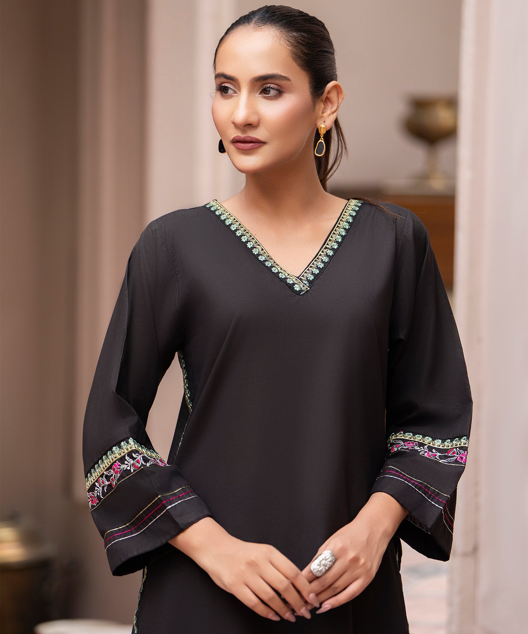 RTW Solid Embroidered Shirt.