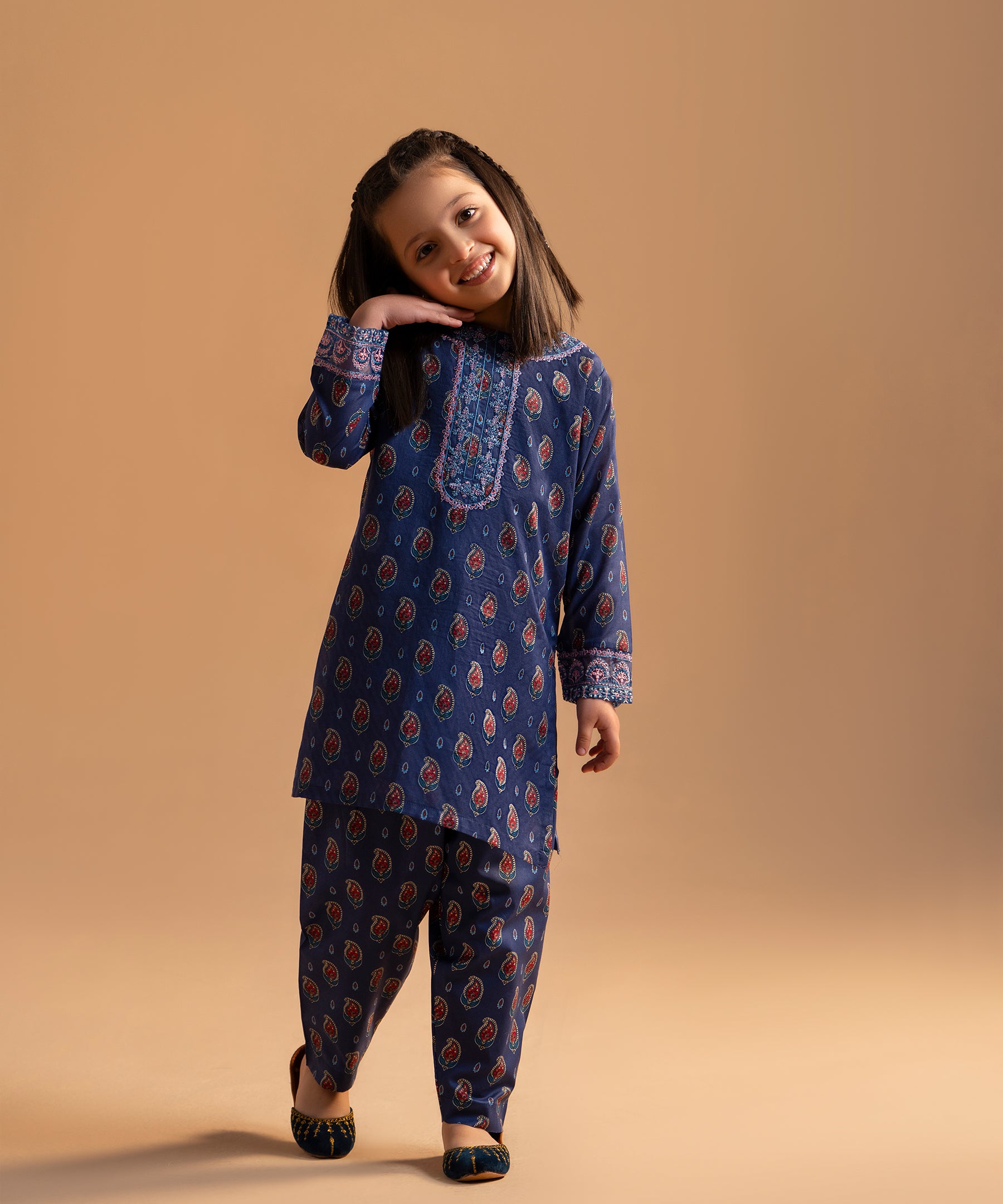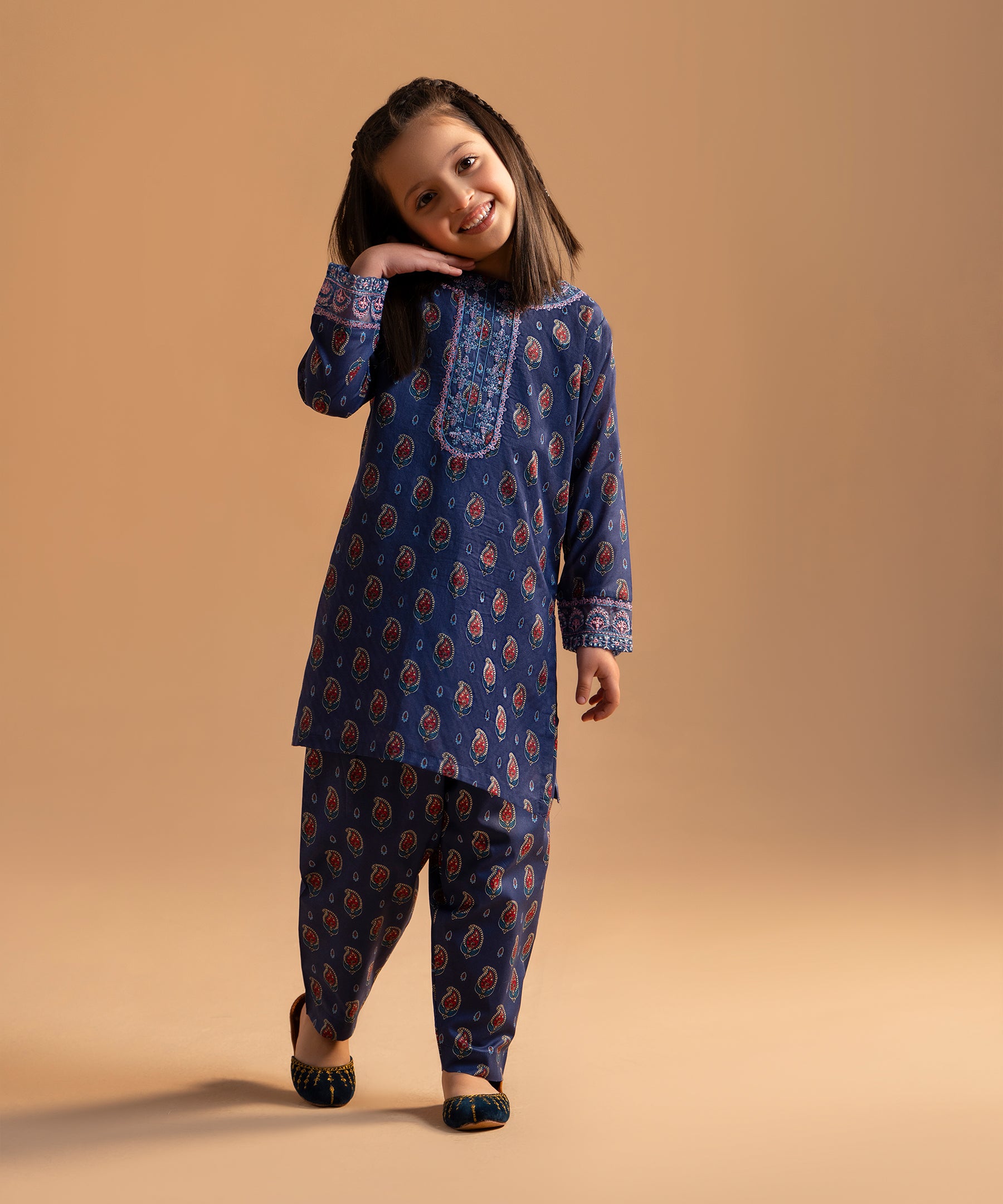 2PC Printed Embroidered Suit - KDS 700