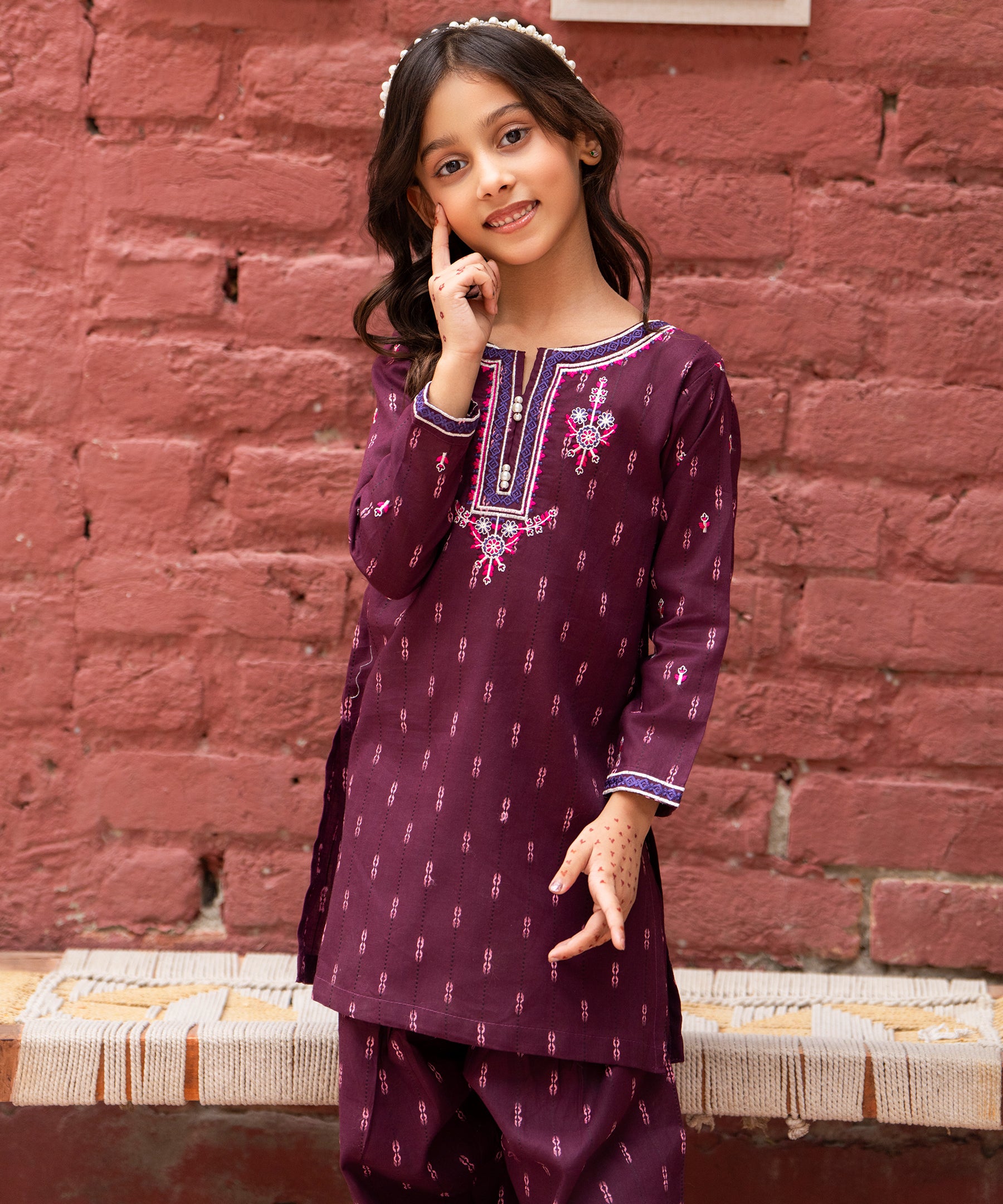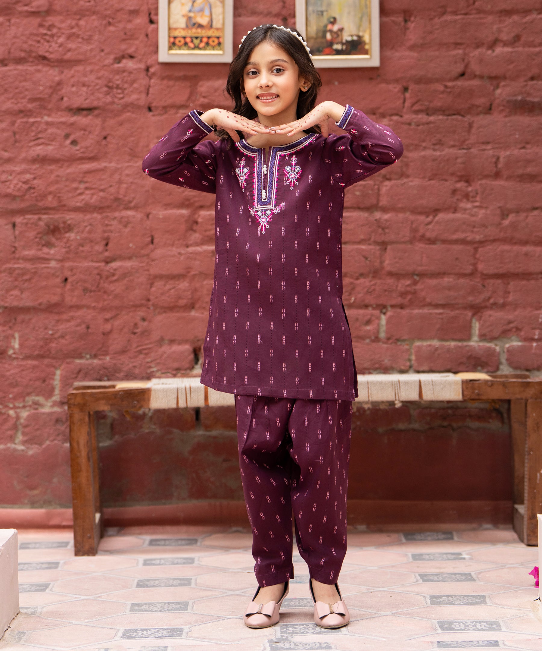 2PC Printed Embroidered Suit - KDS 865