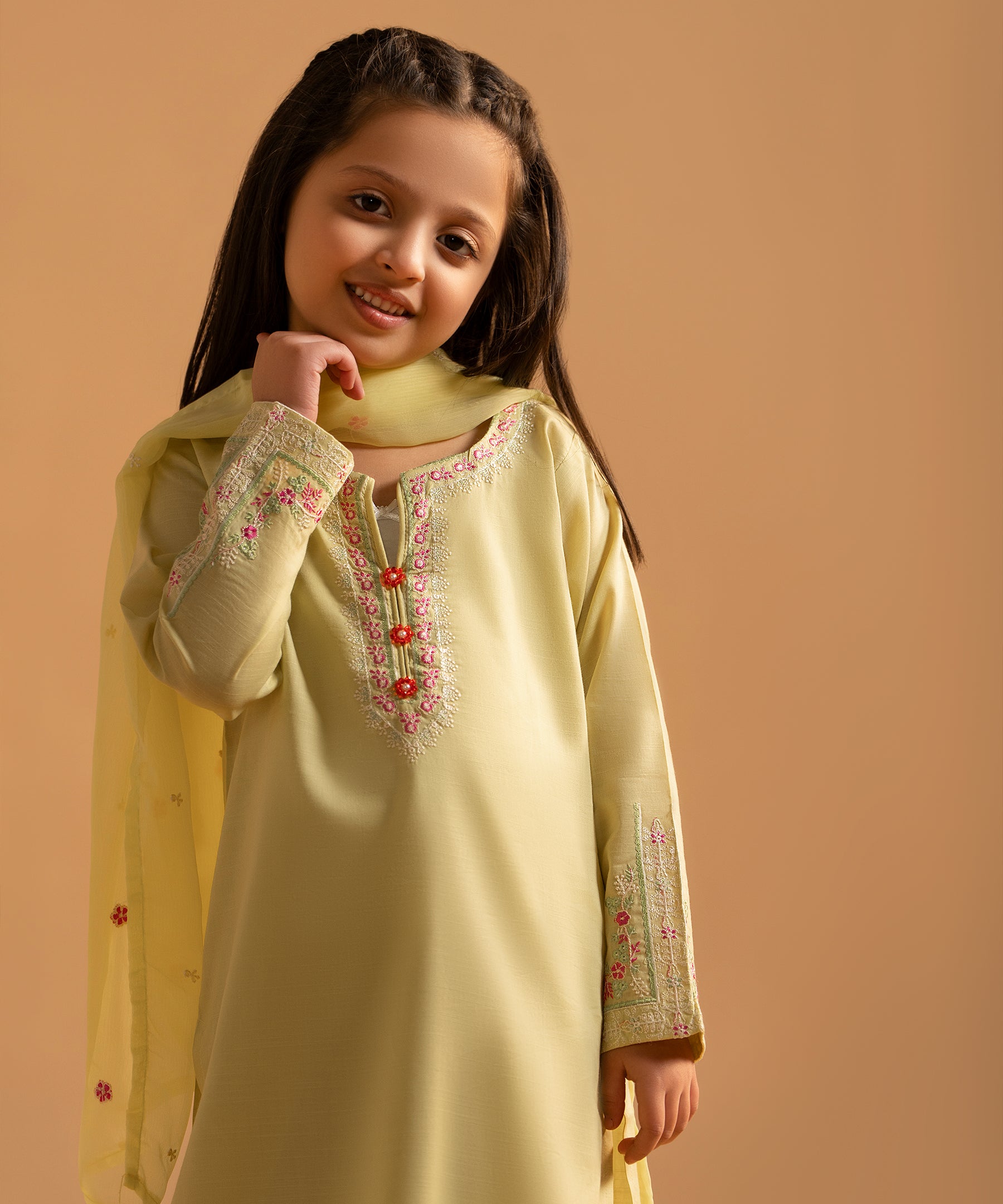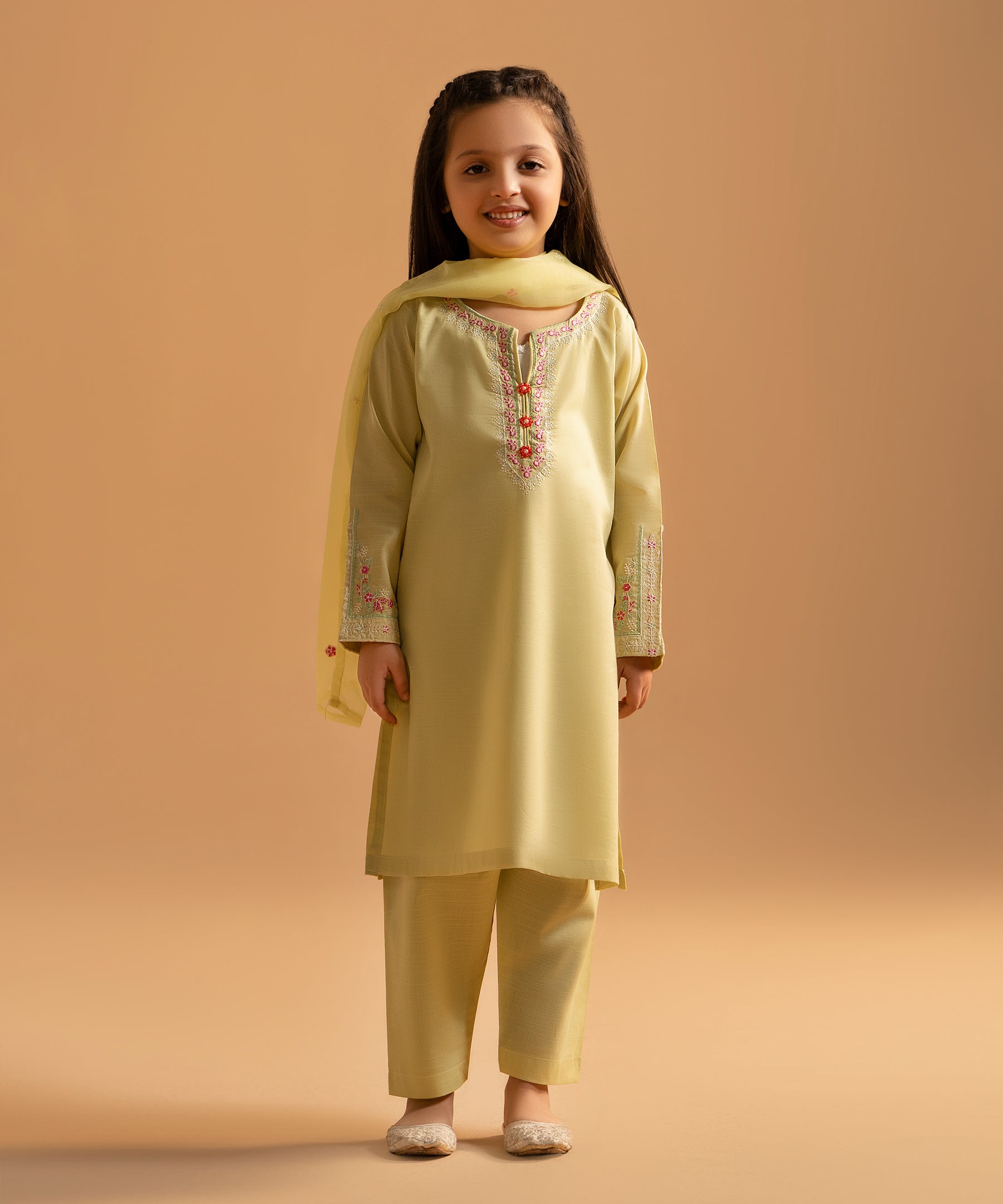 3PC Solid Embroidered Suit - KDS 725